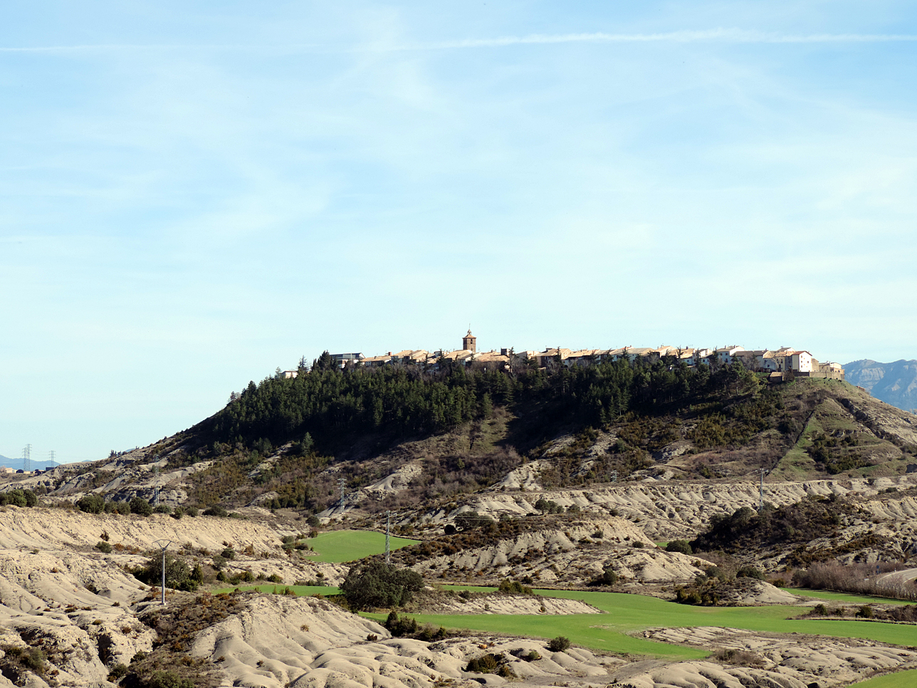 Desde este Villareal nos dirigiremos hacia el este/nordeste siguiendo el antiguo camino a Huértalos ahora transformado en una pista de tierra. Se debe atravesar el barranco de Fago por el cauce que normalmente no lleva excesiva agua. Al aproximarnos al pueblo abandonado la pista se transforma en un camino con cierta pendiente que podrá obligarnos a bajar de la bici un pequeño tramo. Se alcanza finalmente la pista que va por la antigua cabañera hacia el valle de Anso que va por la Sierra de Forcala. Se sigue a continuación esta pista en sentido descendente y hacia el sur para retornar a Berdún. Antes de llegar al núcleo se atravesará el río Veral.